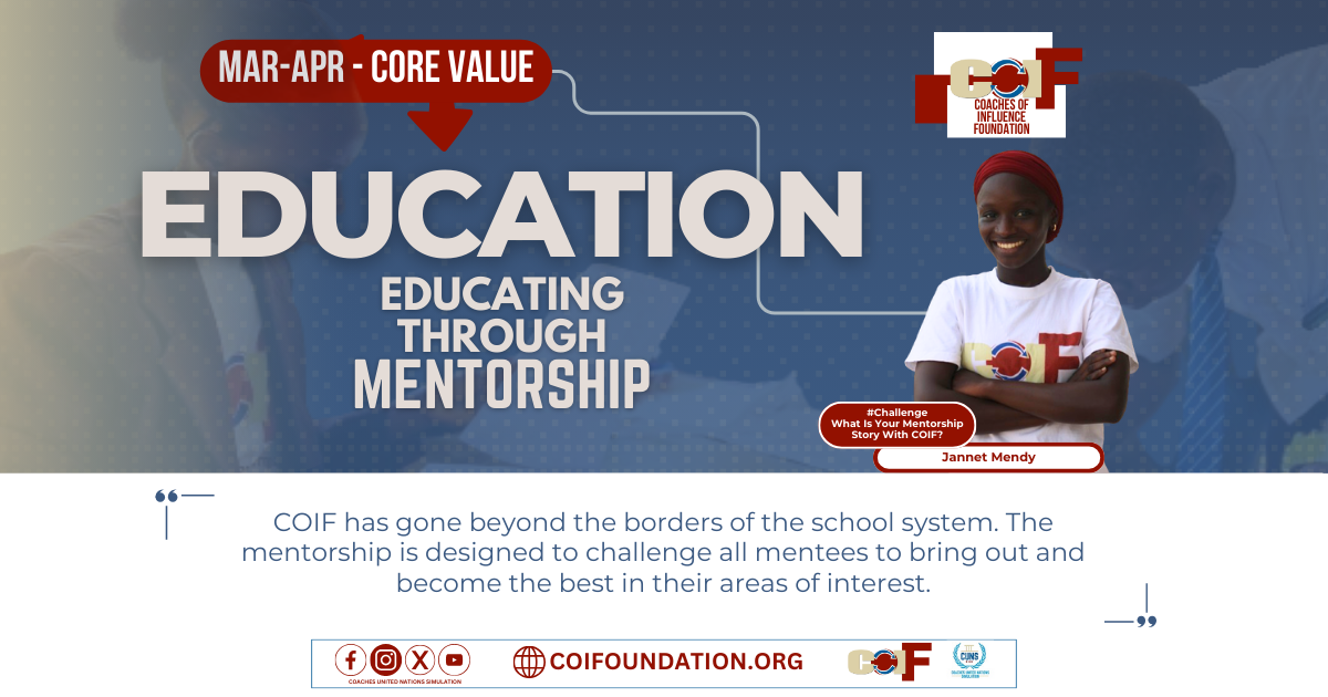 If "Education is the training of the mind to think", then COIF has gone beyond the borders of the school system. The mentorship is designed to challenge all mentees to bring out and become the best in their areas of interest.