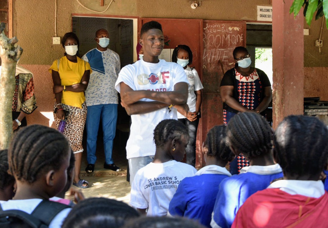 The team led by our Coordinator - Bishop Sylvester James Sambou were officially welcomed by the administration and later introduced to an assembly of students whose faces were radiant with joy, excitement and a hunger to glean from our positive influence. Mr. Samuel Mendy - Assistant Coordinator opened the session with remarks centered on the purpose of our visit and the organization's mission which includes positively influencing identity in the younger generation by nurturing and developing their passion and talents that will move them from the place of "dreaming to becoming".